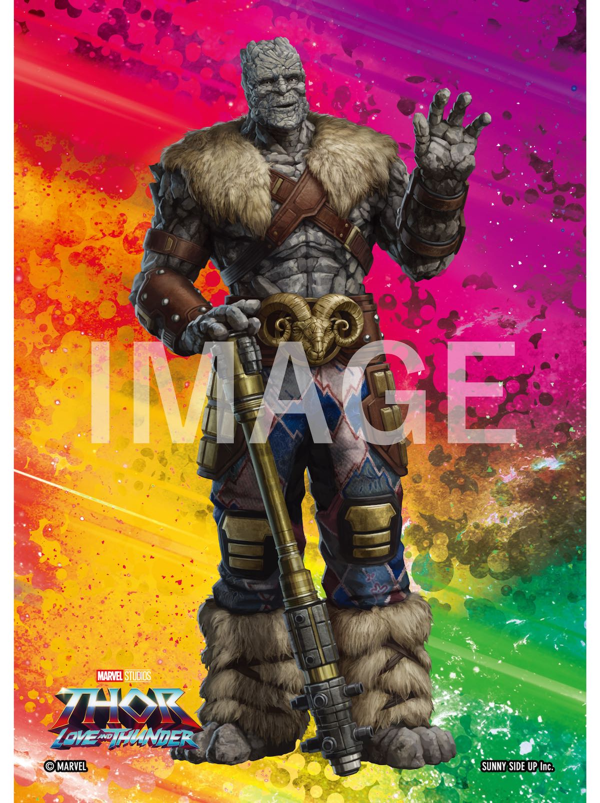 「ソー」や「ヴァルキリー」「コーグ」などのお馴染みのキャラクター、そして今作で新たに登場する「マイティ・ソー」の最新アートを使用したブロマイド。