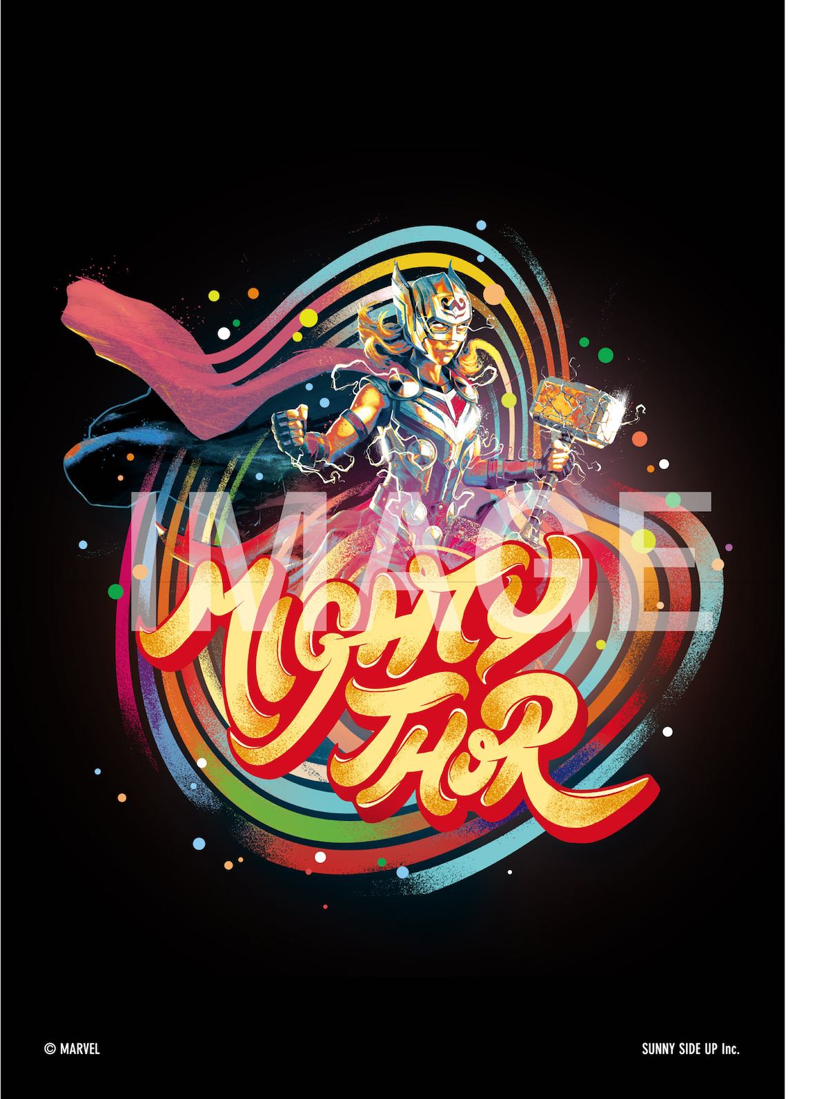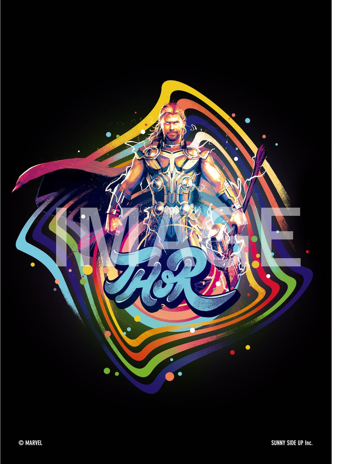 ブラックを背景にカラフルな配色でまとめられた「マイティ・ソー」