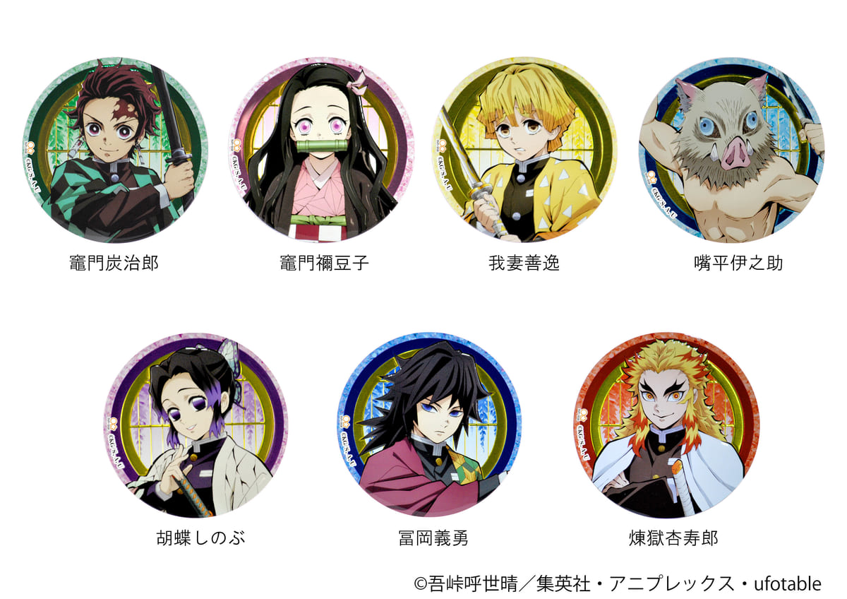 種類:それぞれ全7柄(竈門炭治郎、竈門禰豆子、我妻善逸、嘴平伊之助、胡蝶しのぶ、冨岡義勇、煉獄杏寿郎)
