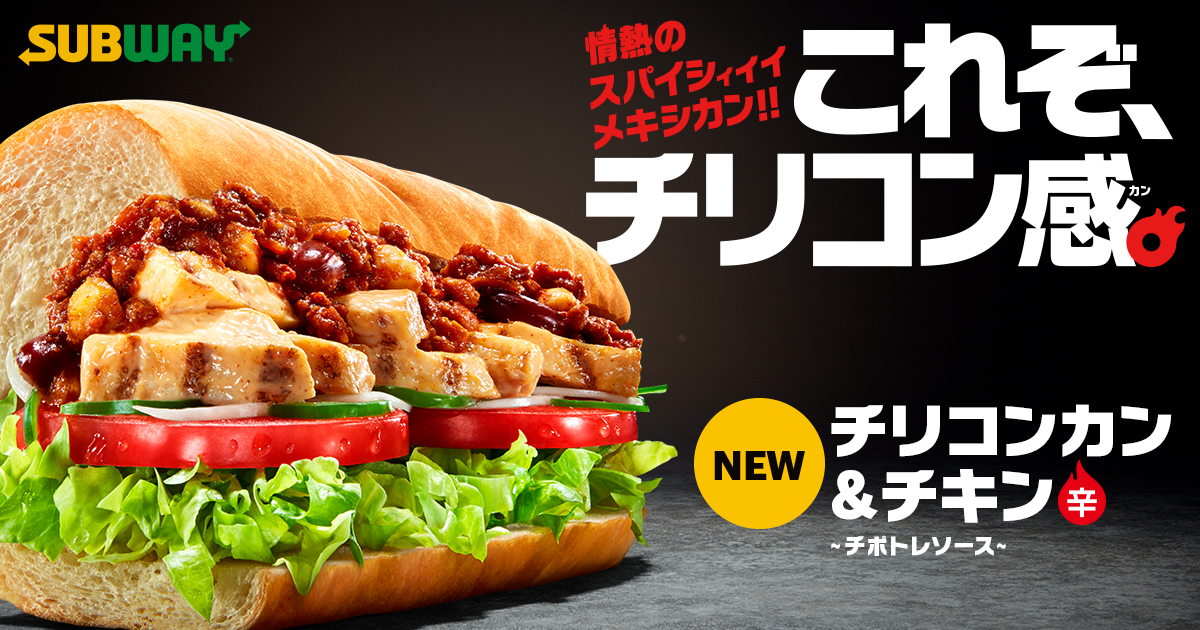 サンドイッチ・チェーン「サブウェイ」から、話題のメキシカンフード「チリコンカン」を使用した「チリコンカン&チキン」が登場!