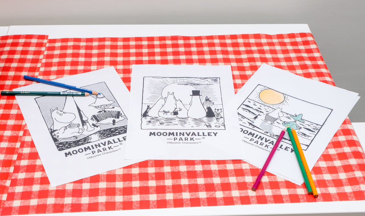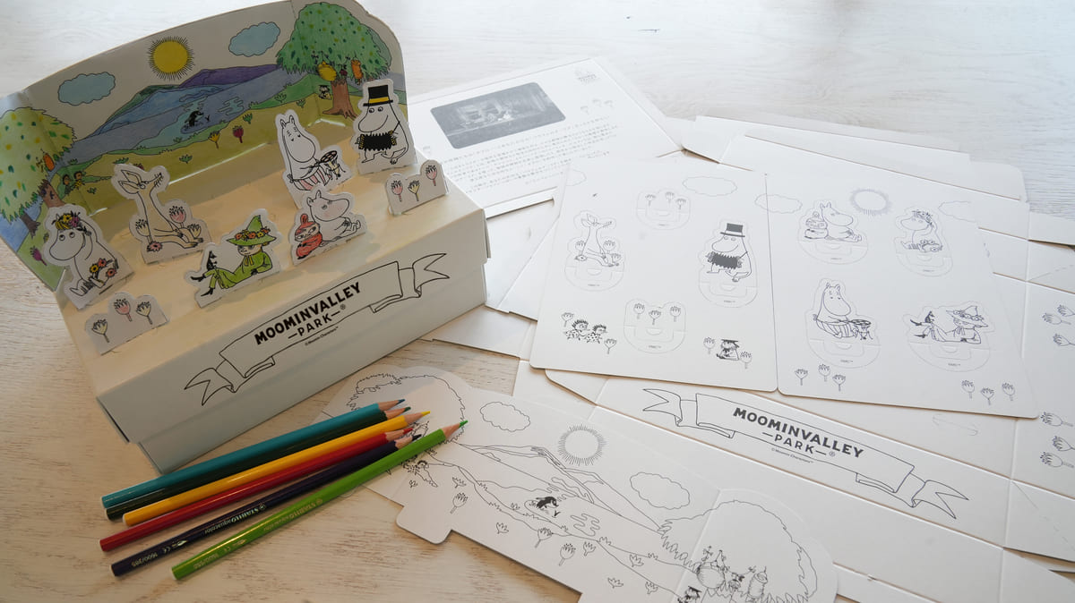 ムーミン谷の仲間たちが勢ぞろいした特別なメインアートを色ぬりして、イマジネーションいっぱいの素敵な舞台を作ることができます。