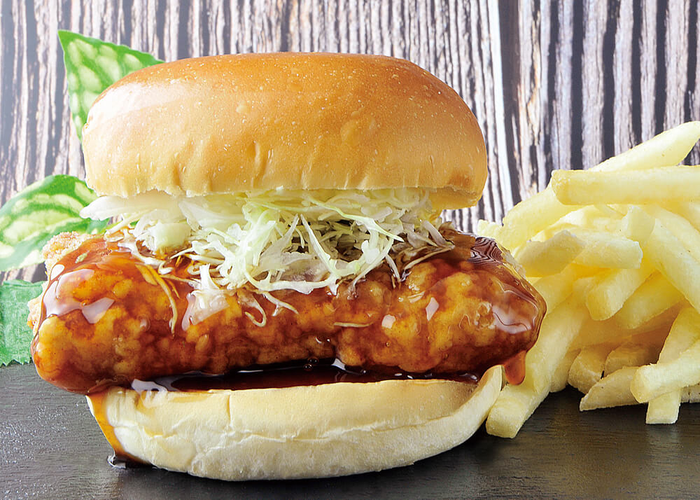 ドムドム人気の「甘辛チキンバーガー」は、チキンを大幅増量し、大幅にボリュームアップ!