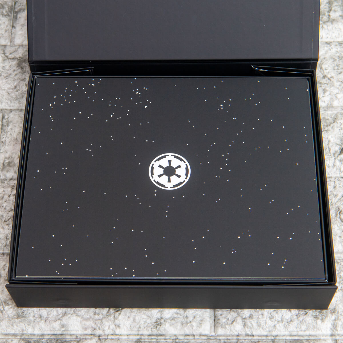 限定エディションにあわせ、特別に用意されたツヤのある専用ボックスを開けると「帝国軍」のシンボルが。