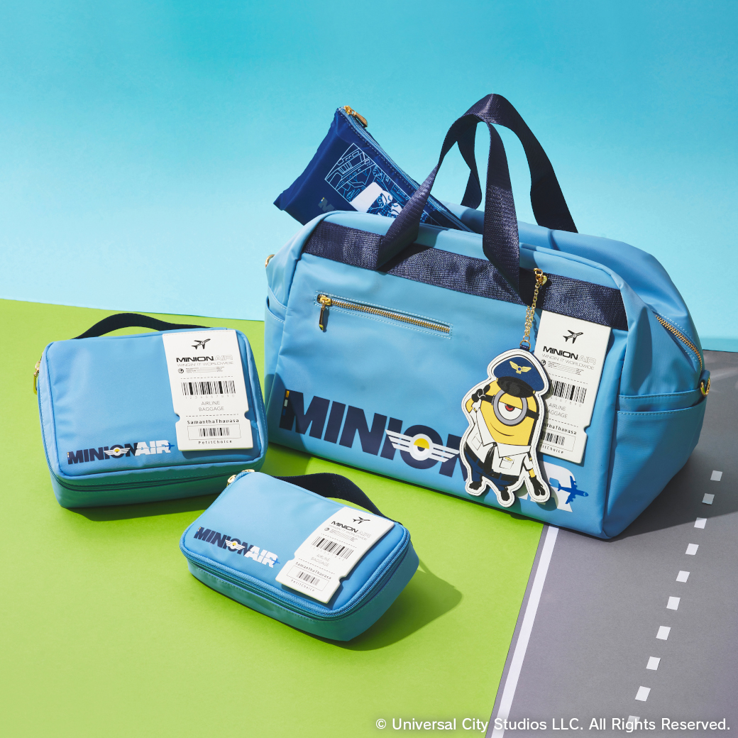 「MINION AIR」の世界観を、フロント部分の金具プレートと内装の総柄に落とし込んだシリーズ。