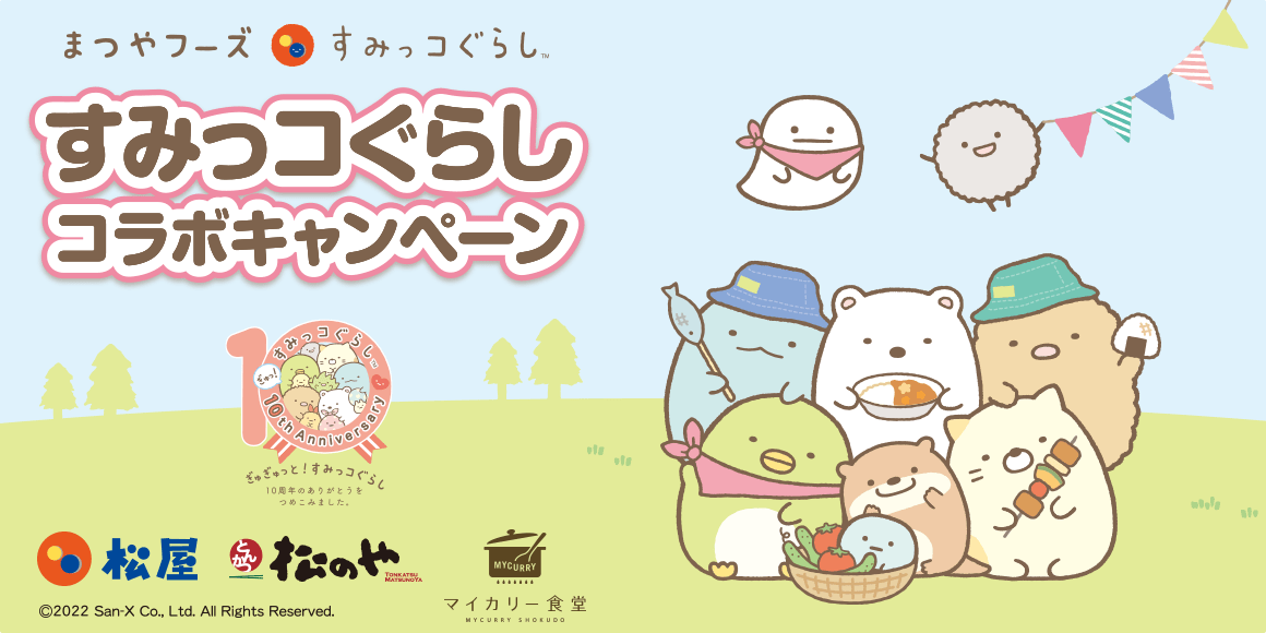 「松屋フーズ×すみっコぐらし」夏のコラボキャンペーンは、全国の松屋、松のや、マイカリー食堂にて、2022年7月中旬から順次配布スタートです☆