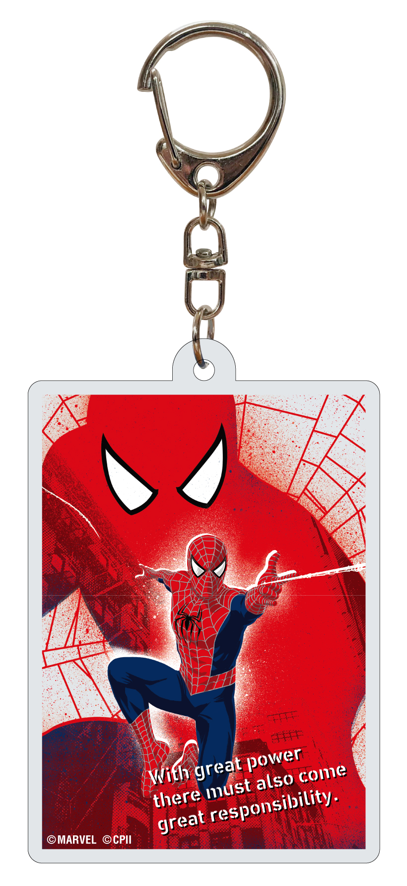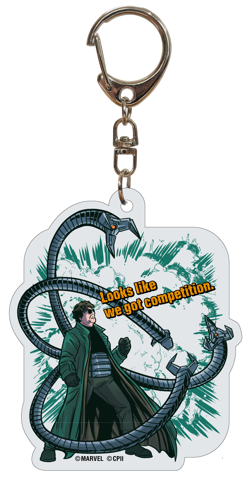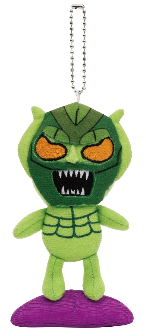ヴィランデザインからは、壊れかけた「グリーン・ゴブリン」のマスクが描かれたキーホルダーや