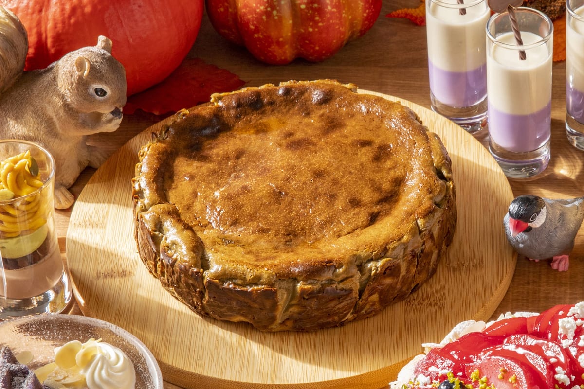 芳醇なほうじ茶の香りと、濃厚なチーズがマリアージュした「ほうじ茶のバスクチーズケーキ」