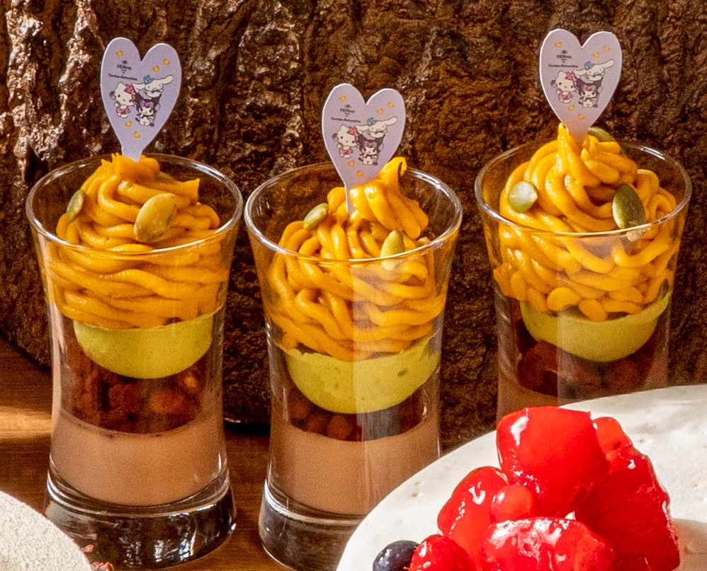 さらに、サンリオキャラクターズにインスパイアされた、キュートでダークな森の世界へと誘うペストリーシェフ渡辺守氏が得意とする秋のスイーツにも注目です☆