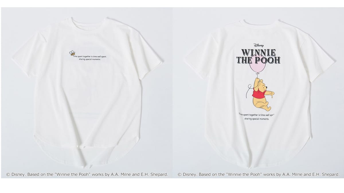 大きな風船を手にした「くまのプーさん」をプリントしたTシャツは、2色展開。