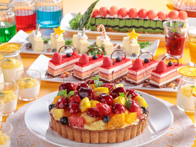 「フルーツタルト」や「スイカロールケーキ」「かき氷」など、デザートコーナーも充実。
