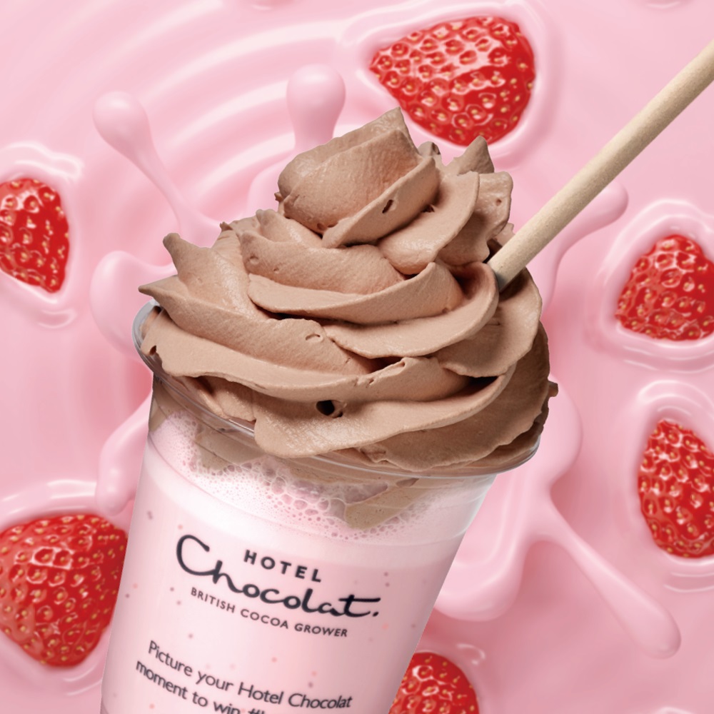夏の暑さや疲れも吹き飛ぶ、フレッシュなストロベリーの酸味と濃厚なカカオを味わえるアイスショコラドリンク。