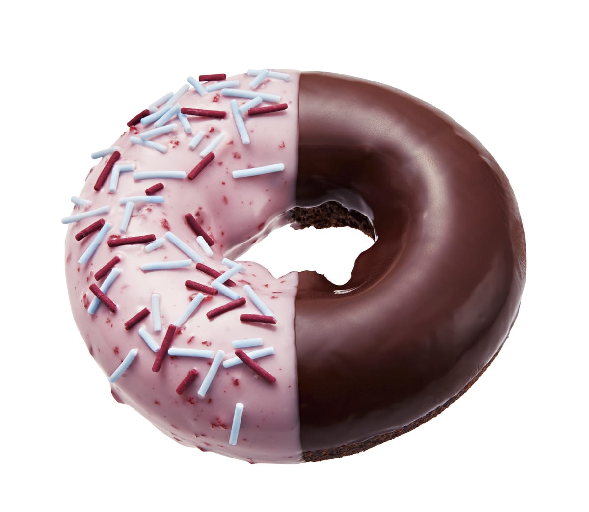 左半分は「仮面ライダーリバイ」をイメージしてストロベリーチョコとカラーシュガー、右半分は「仮面ライダーバイス」をイメージしたチョコレートで仕上げられています。