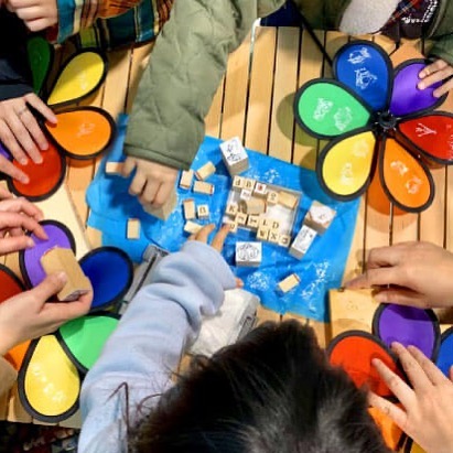 スタンプやサインペンでカラフルな風車をデコレーションし、自分だけのウィンドスピナーを作るワークショップです。