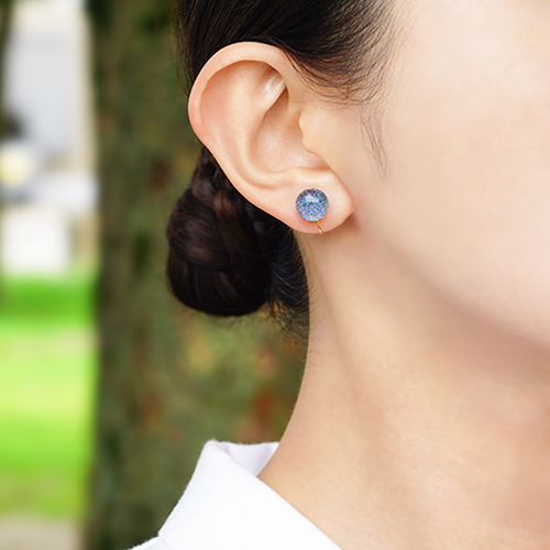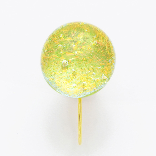 耳元で新緑のようにフレッシュに輝く一粒。