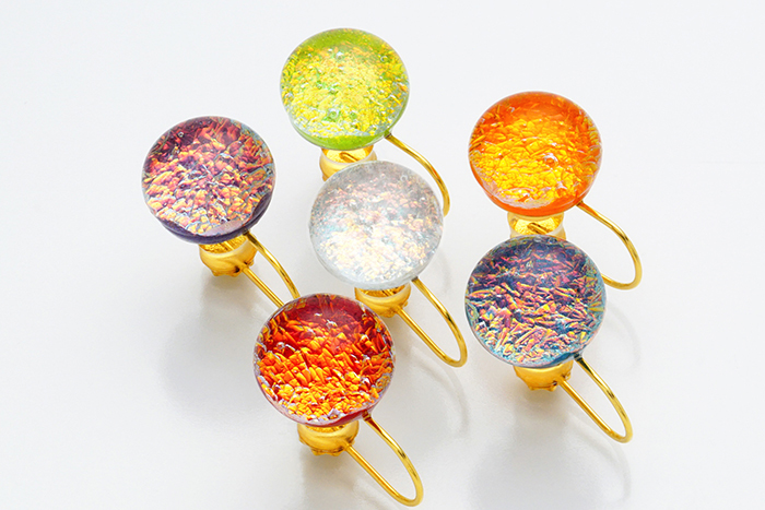京都の自社工房にて職人が一粒一粒丁寧に焼き上げた京ガラスを使用し、すべての工程が手作りによって仕上げられています。