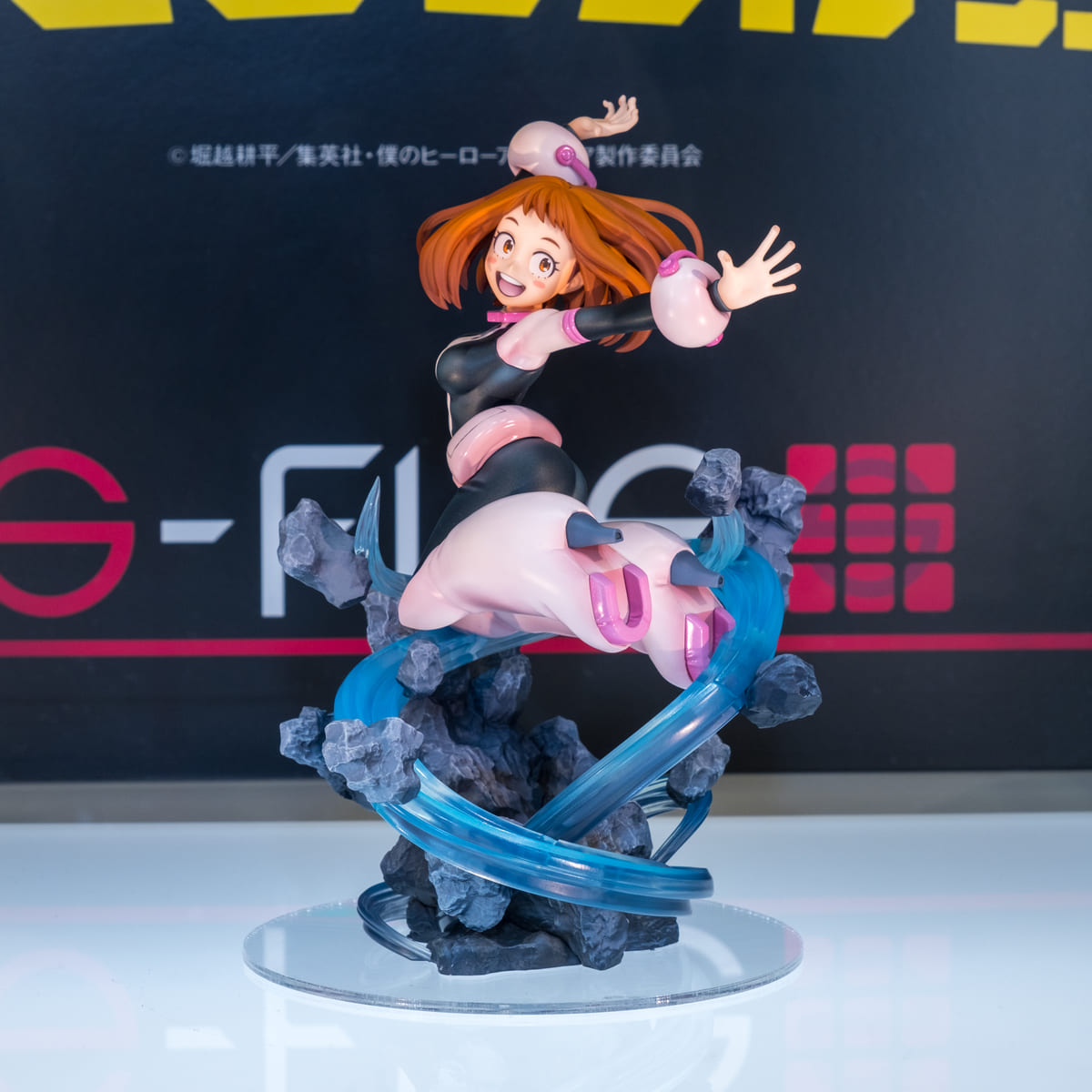 個性「無重力(ゼログラビティ)」を使用しているような、躍動感のある「麗日お茶子」のフィギュア。