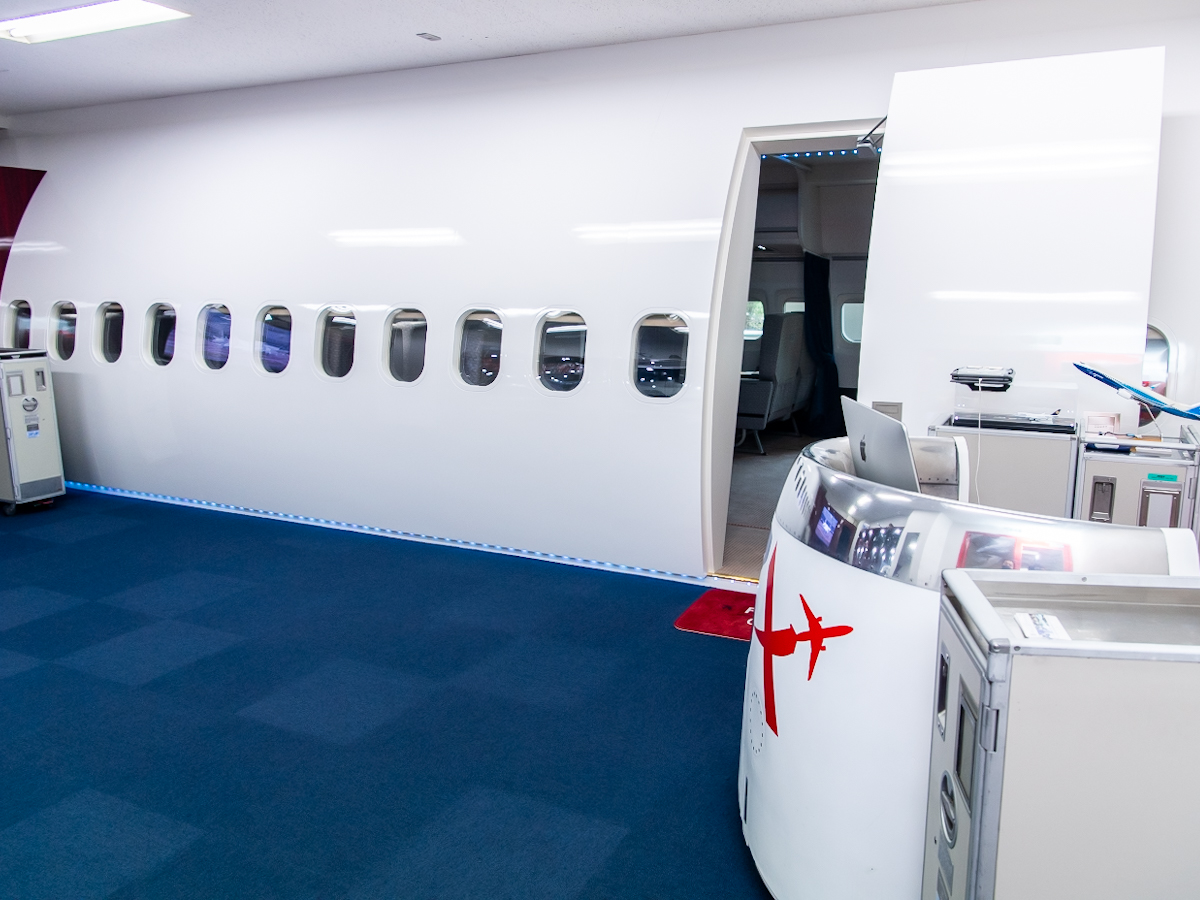 約13メートルにわたる「マクドネル・ダグラス MD-90型」のキャビンが再現されたモックアップも見どころのひとつ。