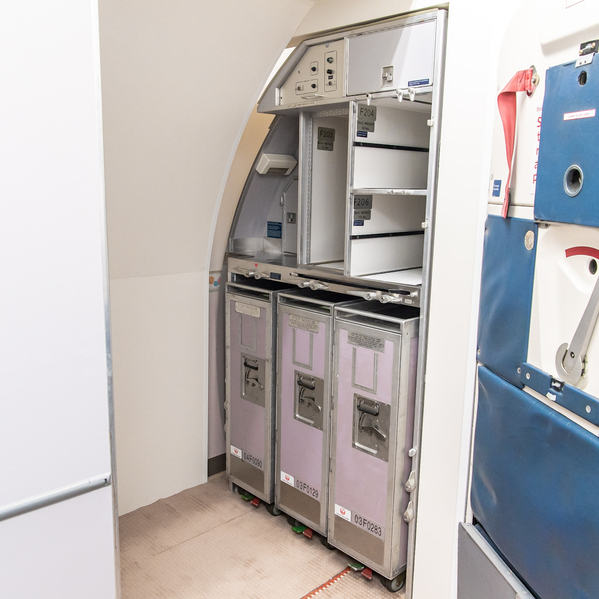 内装には本物の旧政府専用機と同じタイプの座席やカーペットなどを使用し、リアルに機内を再現しています。