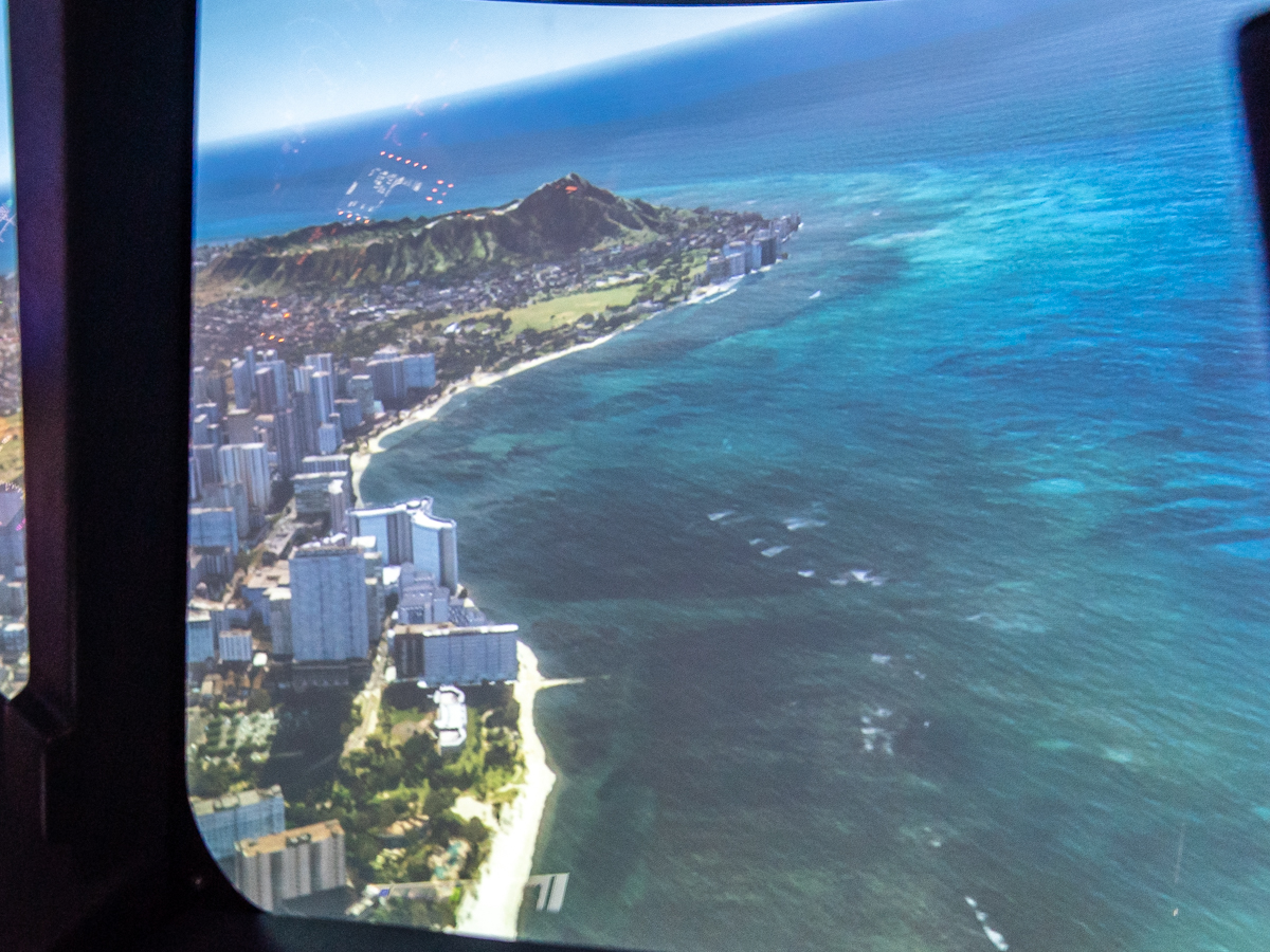 ハワイの美しい海を見下ろしながらダニエル・K・イノウエ国際空港(旧ホノルル国際空港)に着陸するなど、自由度の高い飛行をすることができます。