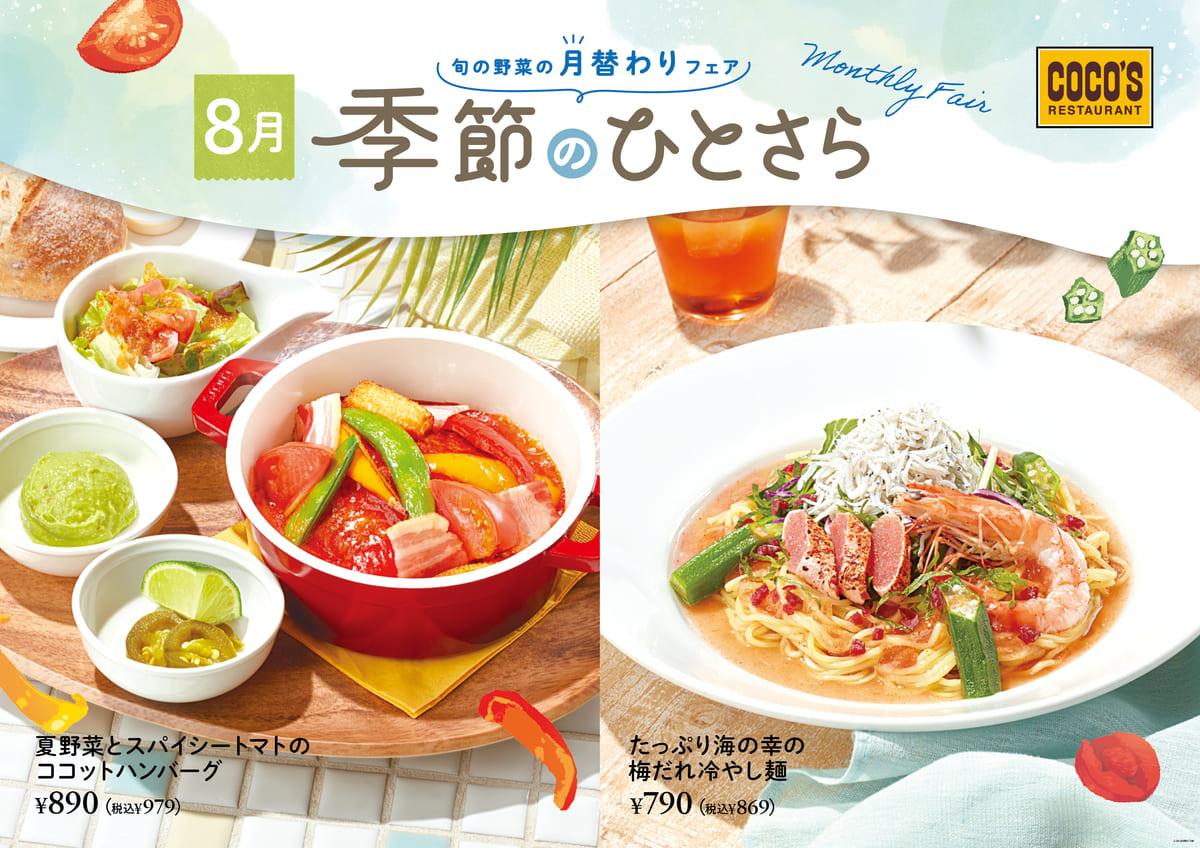 ファミリーレストラン「ココス」にて、季節の食材をテーマにした月替わりフェア「季節のひとさら~8月~」を開催!