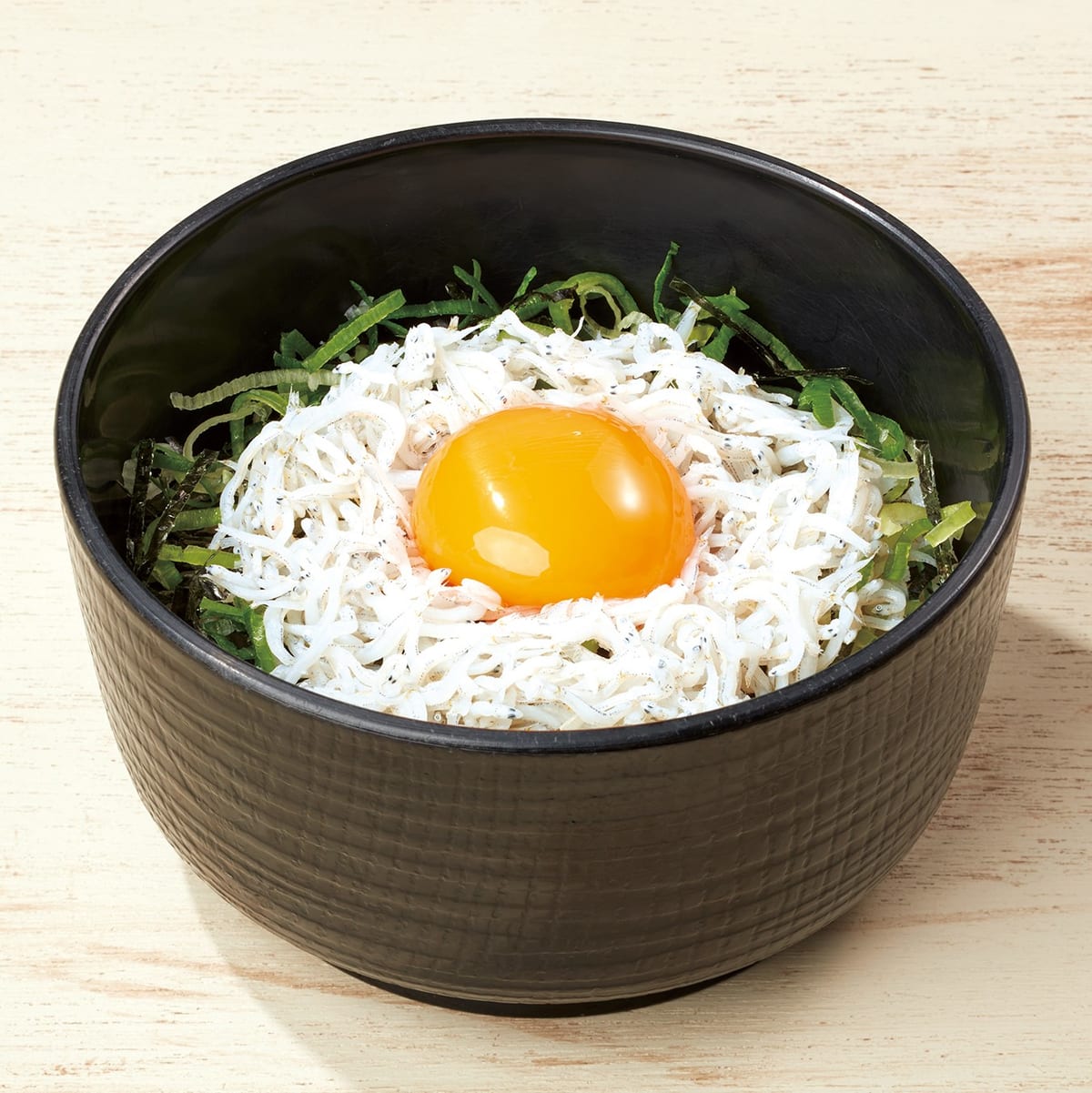 たっぷりのしらすに卵黄がトッピングされた「しらす小丼」、