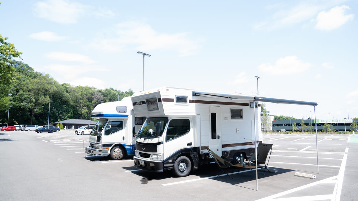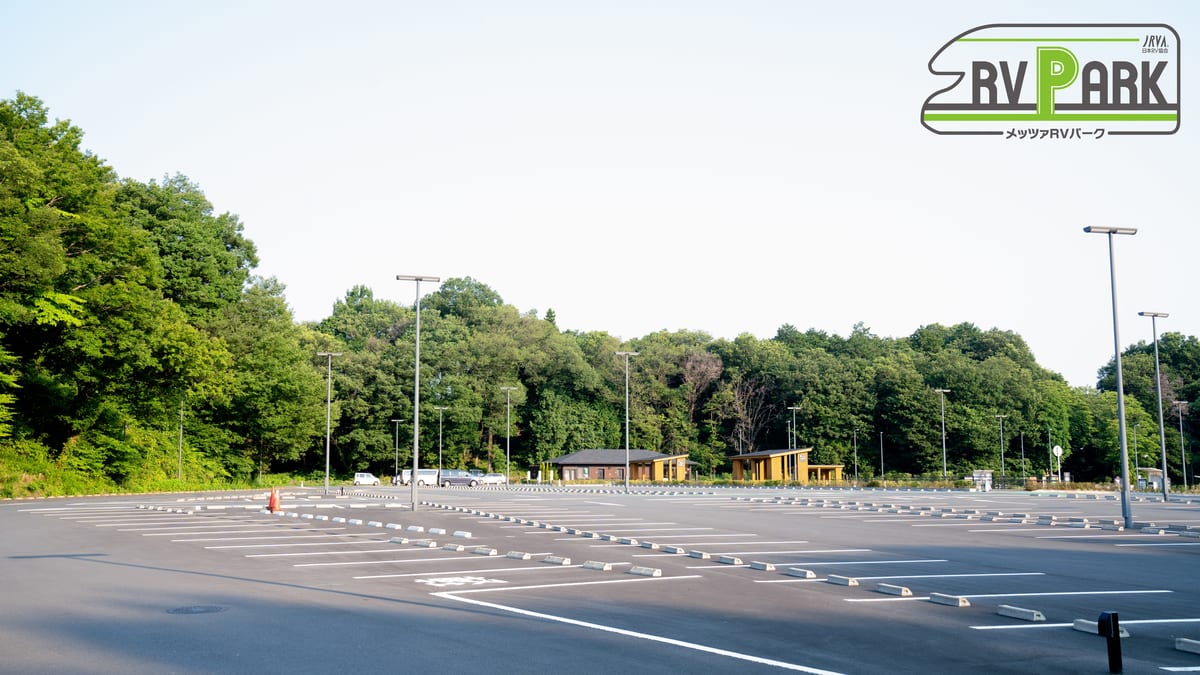 キャンピングカーなどで車中泊ができる「RVパーク」がメッツァ駐車場内にオープン。