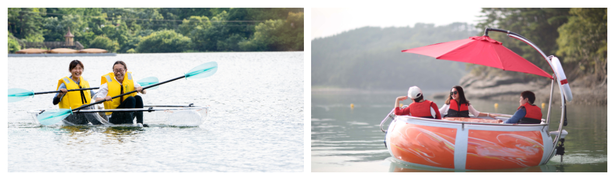 さらに、湖にゆらゆらと浮かぶ独特な浮遊感を味わうことのできる、クリアカヤック(ボート)のテスト導入も実施。