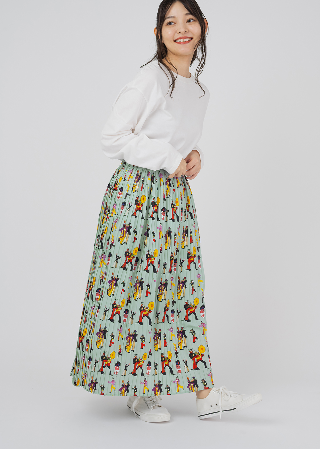 総柄プリントの生地には、アコーディオンプリーツが施されています。