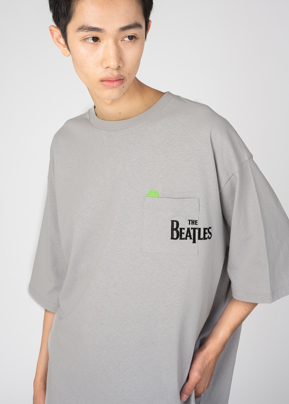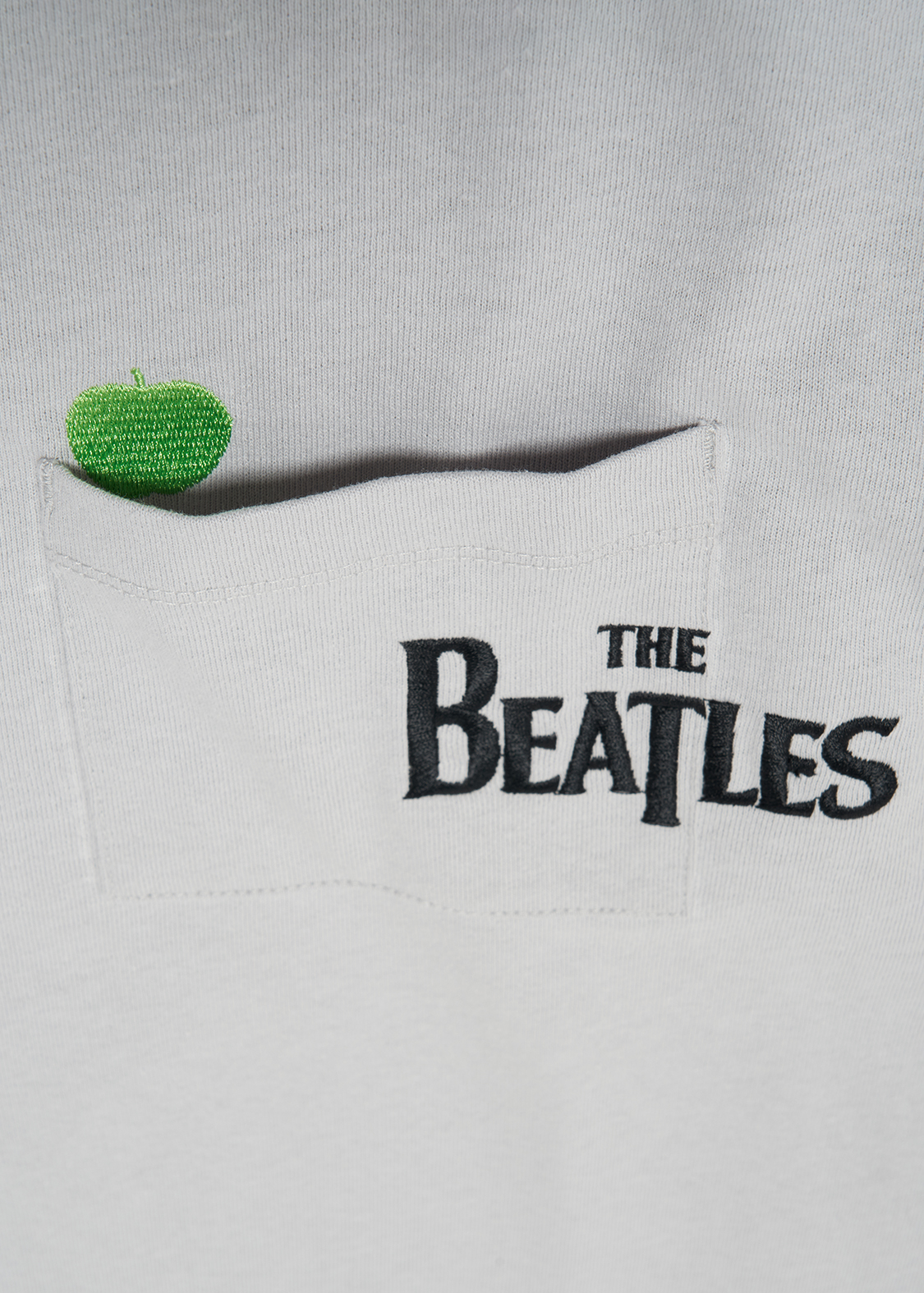 胸元のポケットに、ザ・ビートルズのバンドロゴと小さなグリーンアップルが刺繍されたシンプルなデザインになっています。