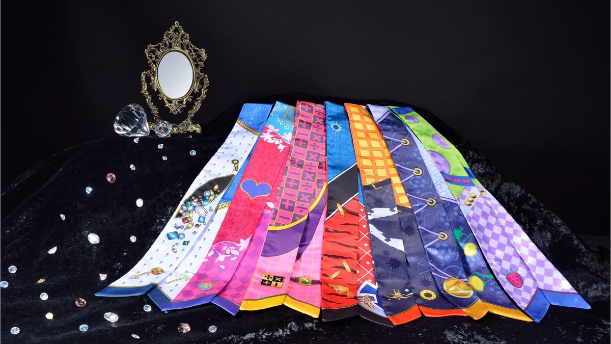 第五部「黄金の風」に登場するキャラクター12人をイメージしたリボンスカーフ。