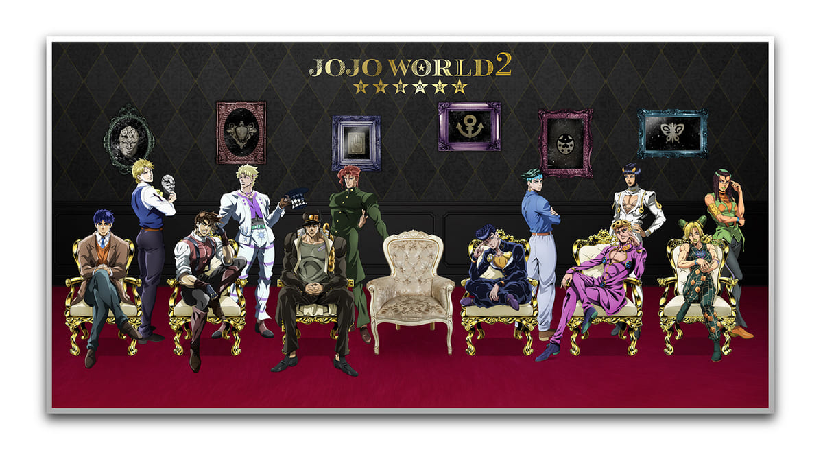 また「JOJO WORLD2」限定の描きおろし等身イラストとしてアニメ「ジョジョの奇妙な冒険」各シリーズの登場人物全12人が登場!