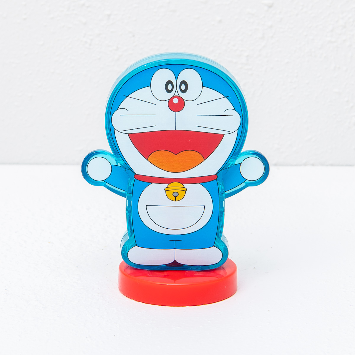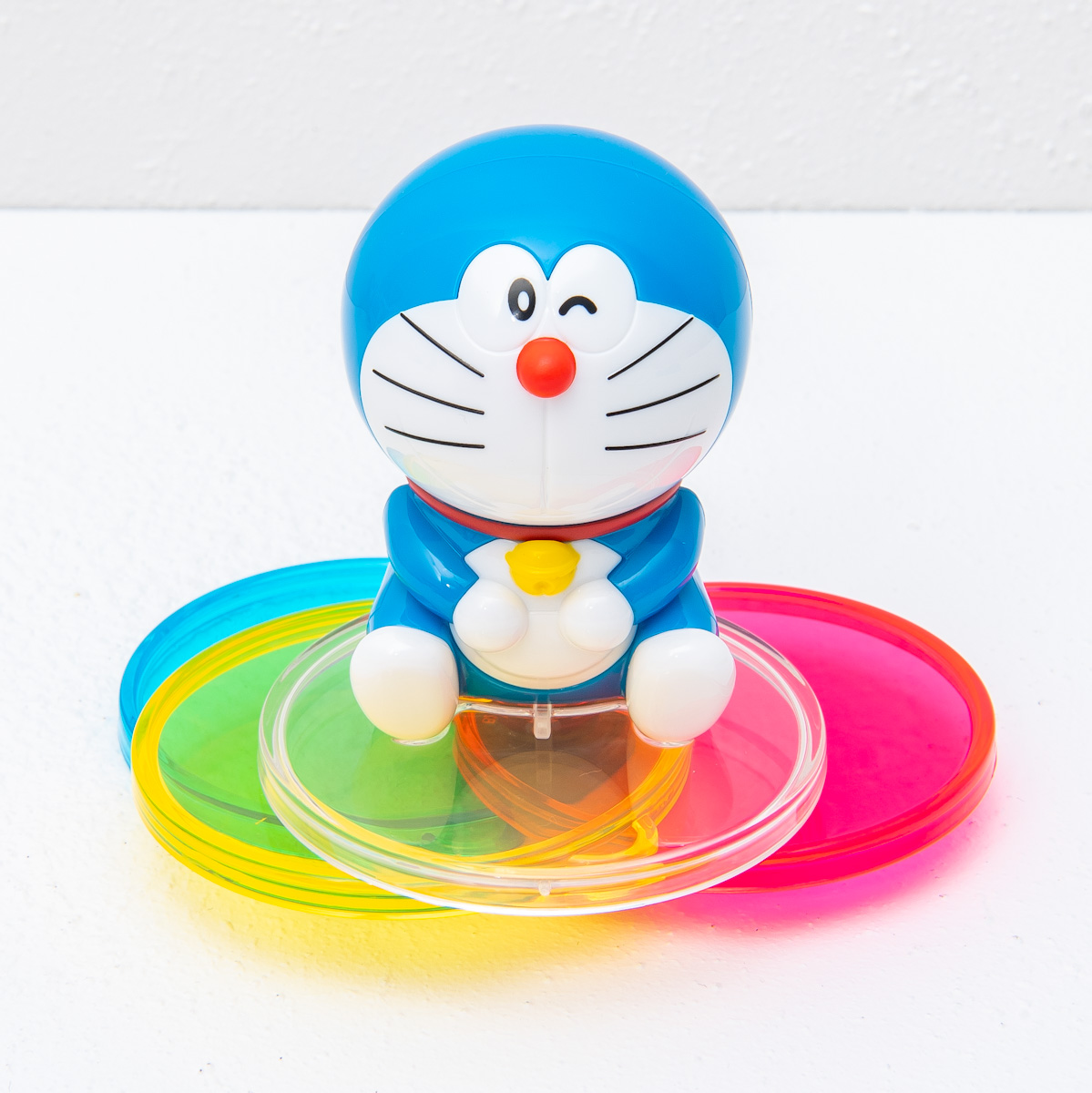 「ドラえもん」が座る台座に、赤、青、黄色のフィルターが内蔵された「かさねてみよう!色の実験」