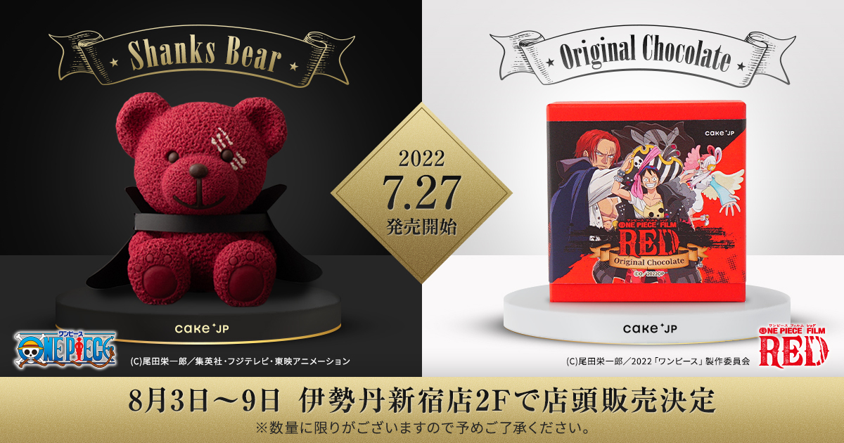 Cake.jpとTVアニメ『ONE PIECE』がコラボした「シャンクスベア」と劇場版『ONE PIECE FILM RED』オリジナルチョコレートの紹介でした☆