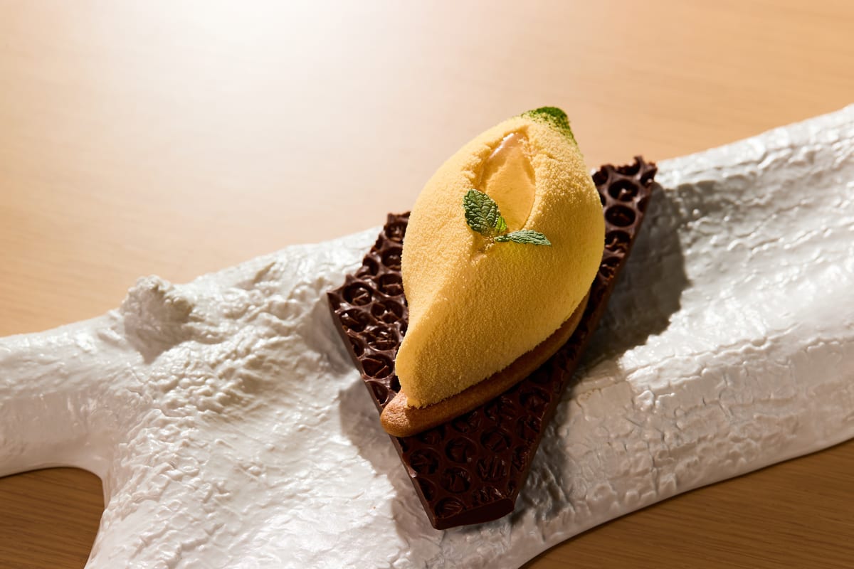 甘さと酸味が絶妙なレモンムースと、特徴のあるロックフォールチーズのアクセント。