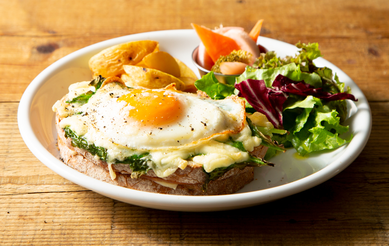 西東京市の矢ケ崎農園で大切に育てられたルッコラを使って仕上げられたクロックマダム。