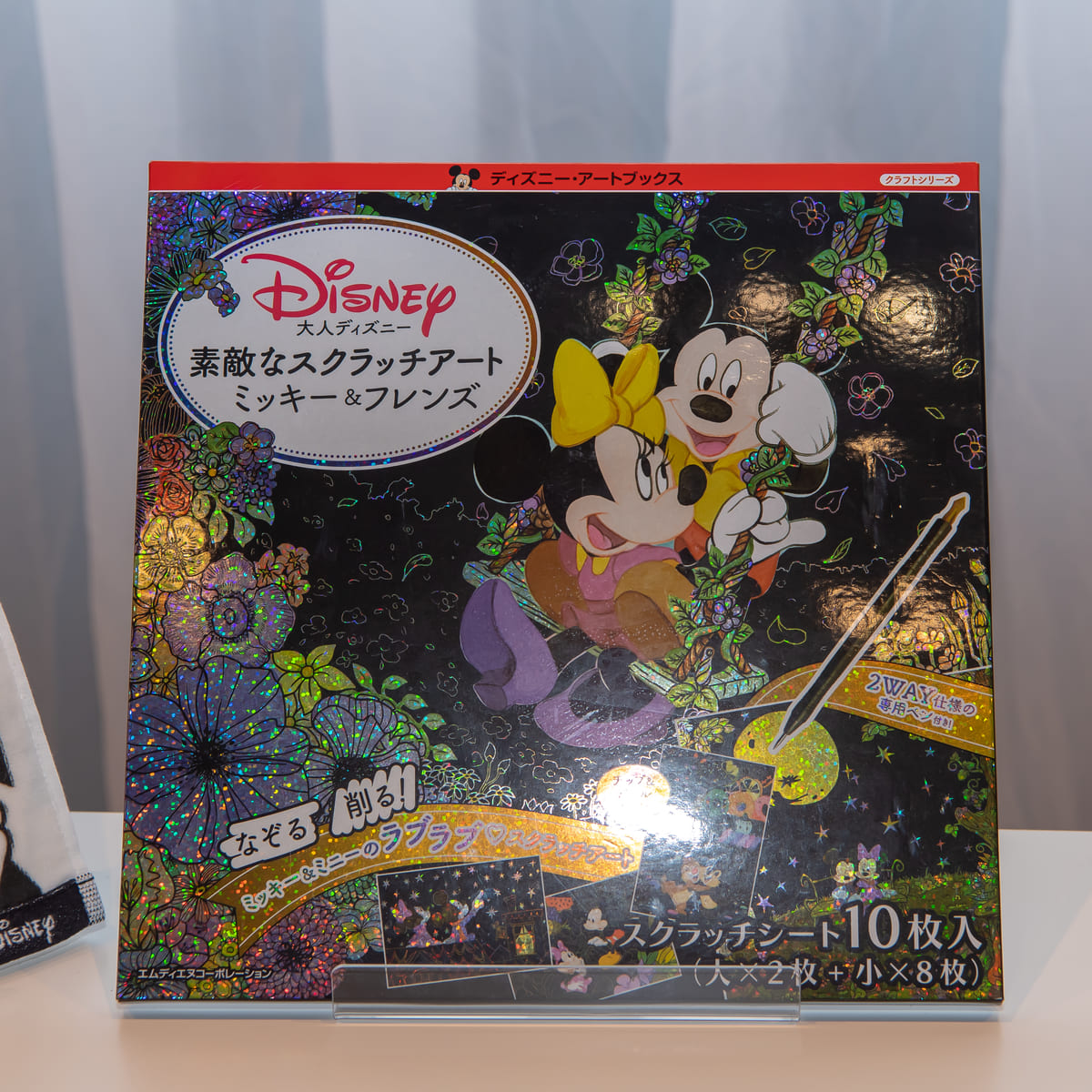「ミッキーマウス」と「ミニーマウス」のアートが10種類収録されたスクラッチアートブック。