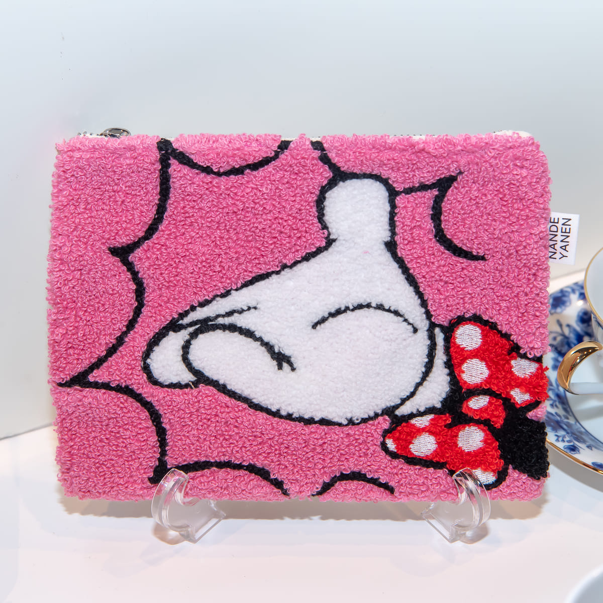 ふわふわな手触りのサガラ織りで仕上げられたポーチ。