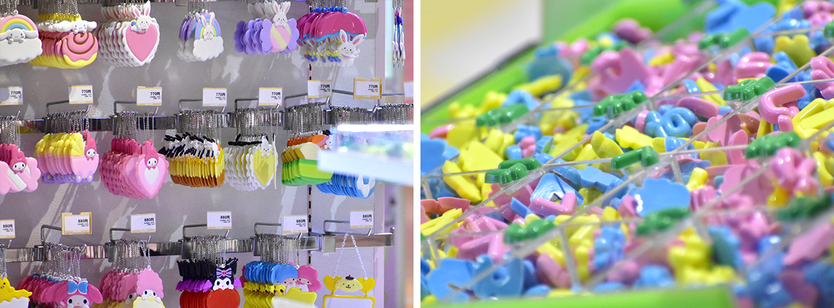 サンリオキャラクターたちのグッズが入ったカプセルトイが並ぶコーナーもあり、かわいくてワクワクするエリアです☆