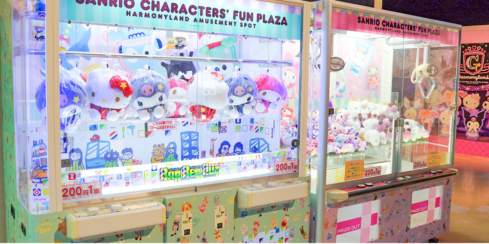かわいいサンリオグッズがたっぷり詰まったクレーンゲームコーナー。