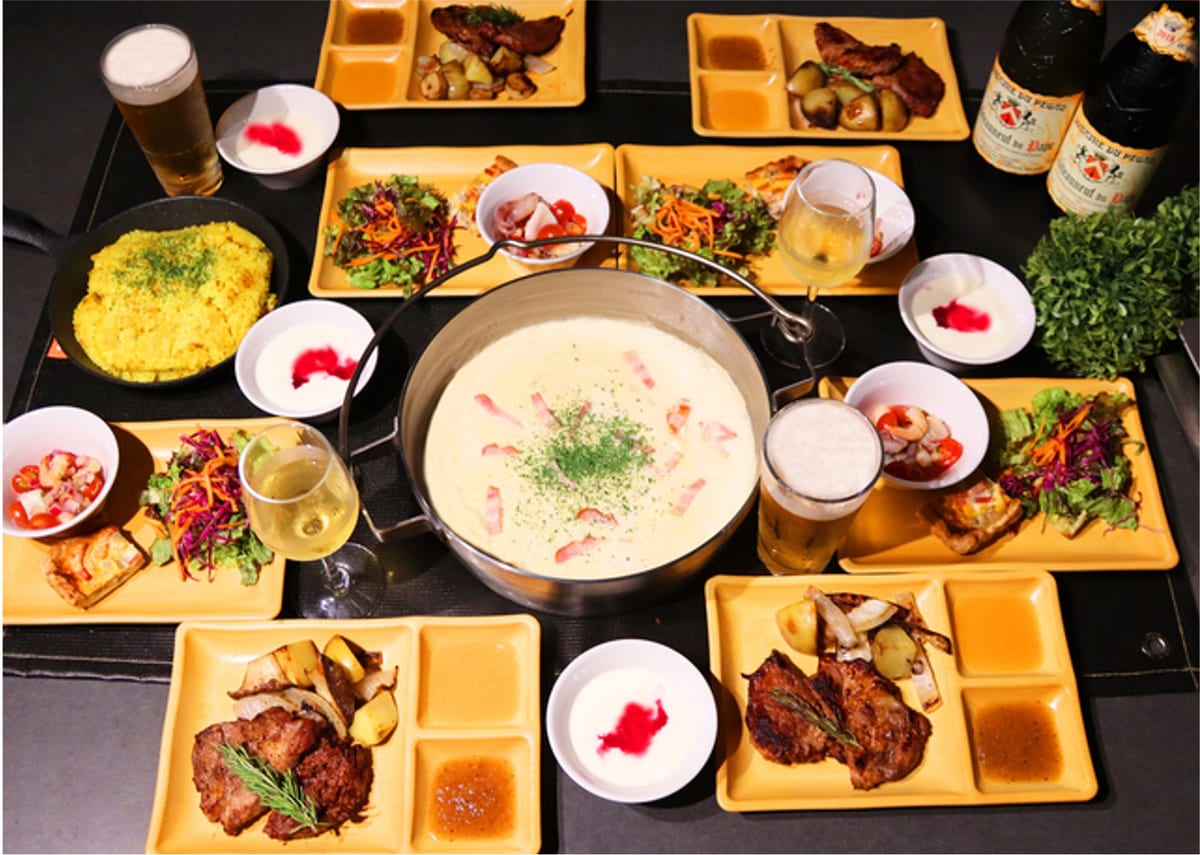 夕食はBBQ×フレンチやイタリアンなどのコース料理を組み合わせたメニューです。