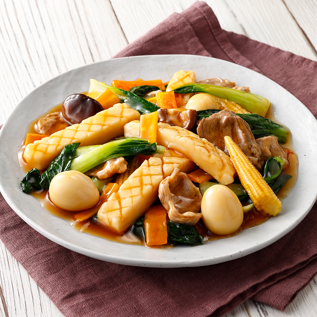 調理しても縮まず、本物のイカのようなやわらかな食感が楽しめます☆