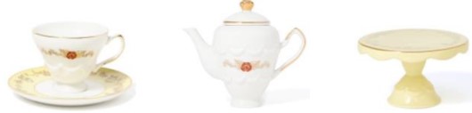 バラのモチーフがワンポイントで描かれた「カップ&ソーサー」や「ティーポッド」