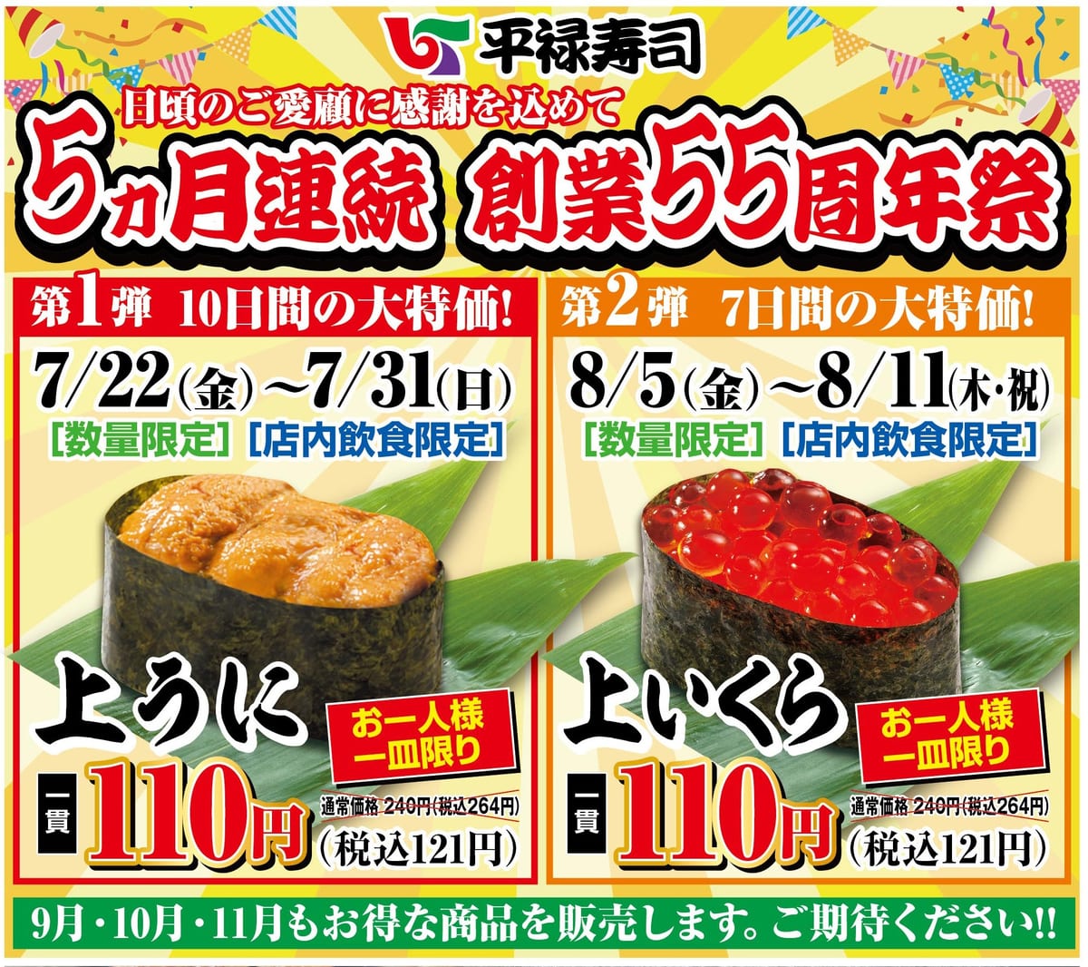平禄寿司「5ヵ月連続 創業55周年祭」