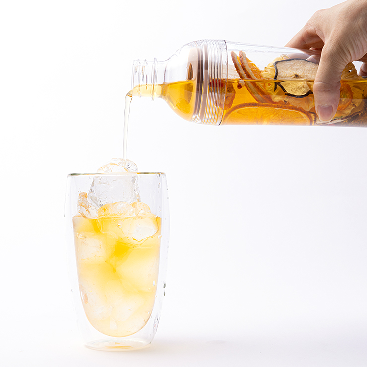 「Dozo Freesh Fruits Tea」は冷たい水、炭酸水、お湯など、好みや気分によって楽しめます。