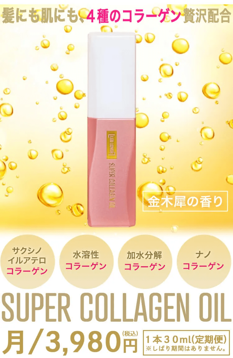 髪にも肌にも使える両用コラーゲンオイル「スーパーコラーゲンオイル」を紹介していきます。