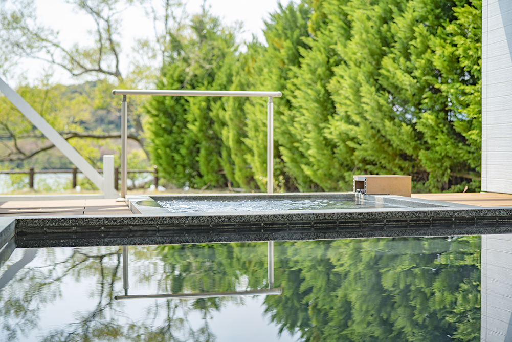 足を伸ばせば丹後半島の美しい海を楽しめ、客室では好きなときに涼めるプライベートプールが利用でき、贅沢な時間を過ごせます。
