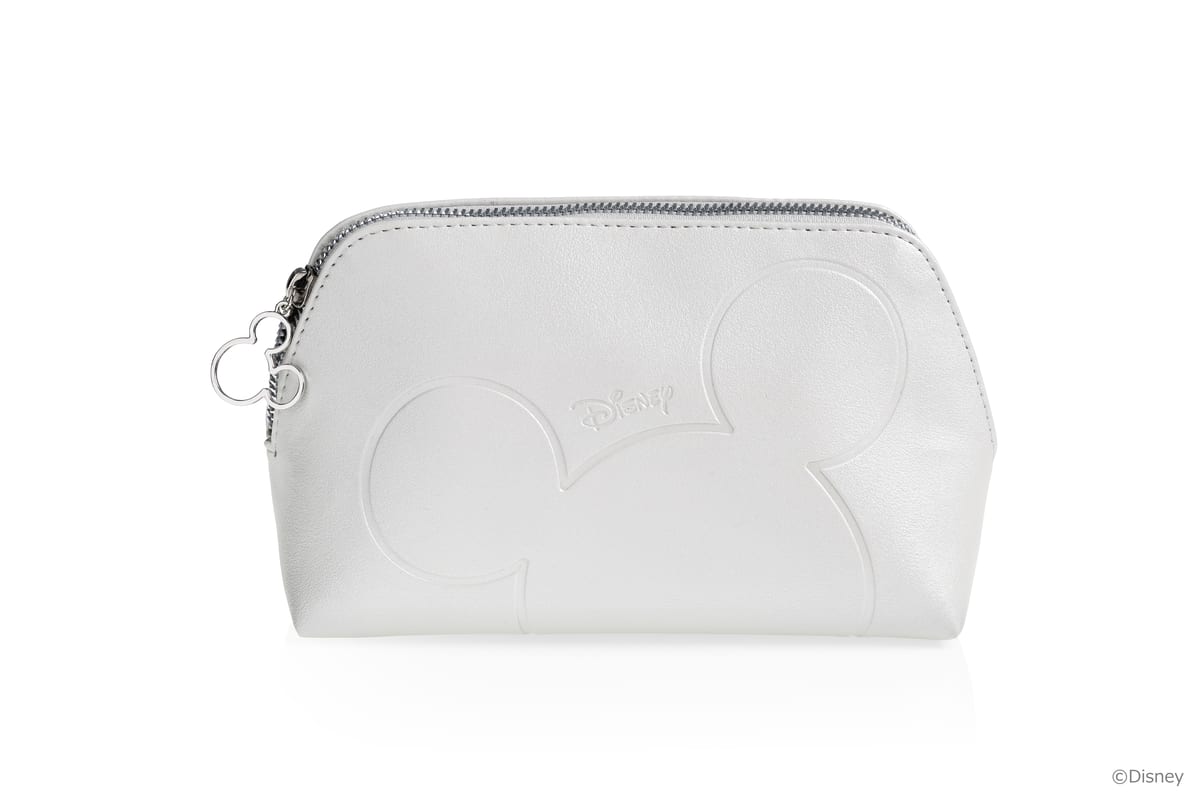 清潔感のあるホワイトをベースにした「ミッキーマウス」デザインのコスメポーチ。