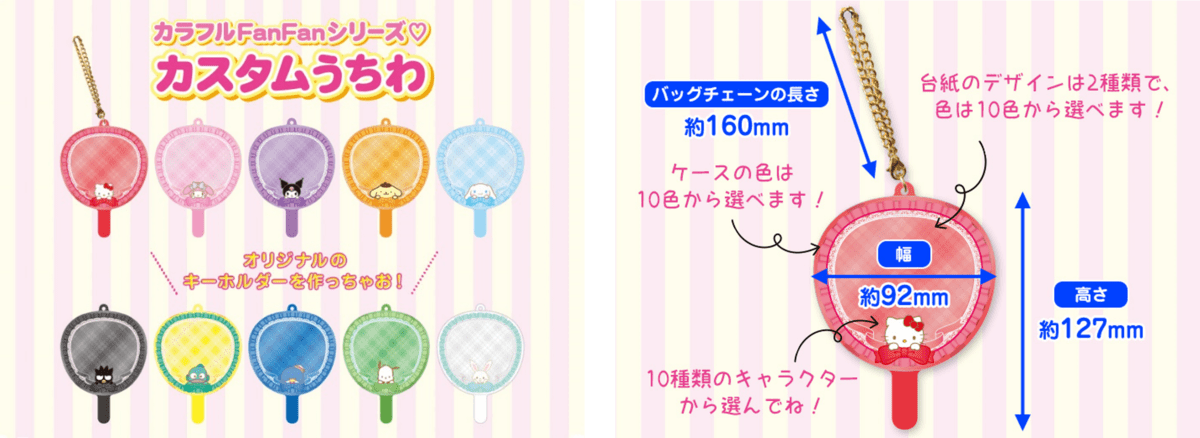 サンリオピューロランドにて、フタ・ケース・台紙の3つのパーツから組み合わせられる「カラフルFanFanシリーズ♡カスタムうちわ」のサービスがスタート!