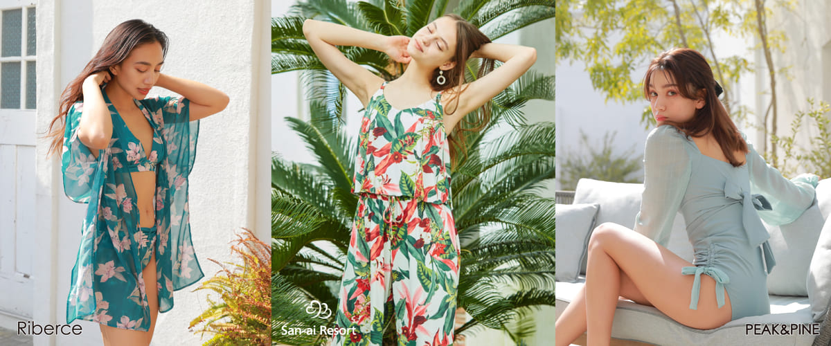 「San-ai Resort(サンアイリゾート)」「PEAK&PINE(ピークアンドパイン)」「LAULEA(ラウレア)」「Riberce(リベーチェ)」の4店舗が集積した日本最大級の常設の水着売場を構える西銀座デパート。