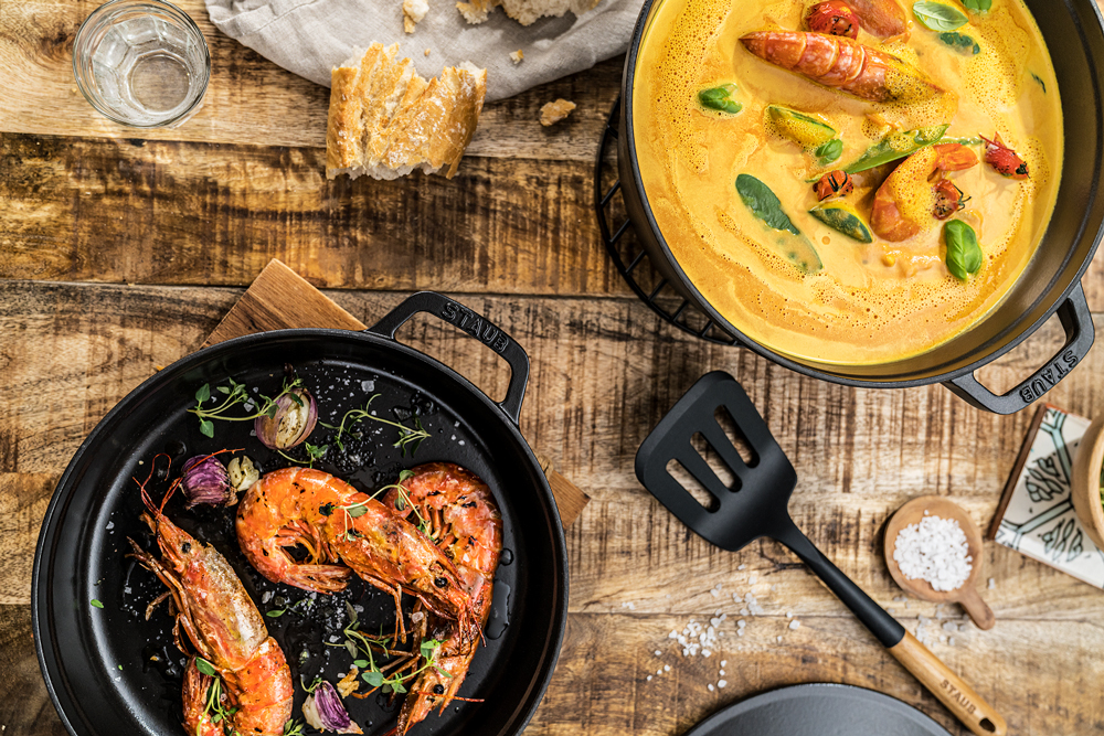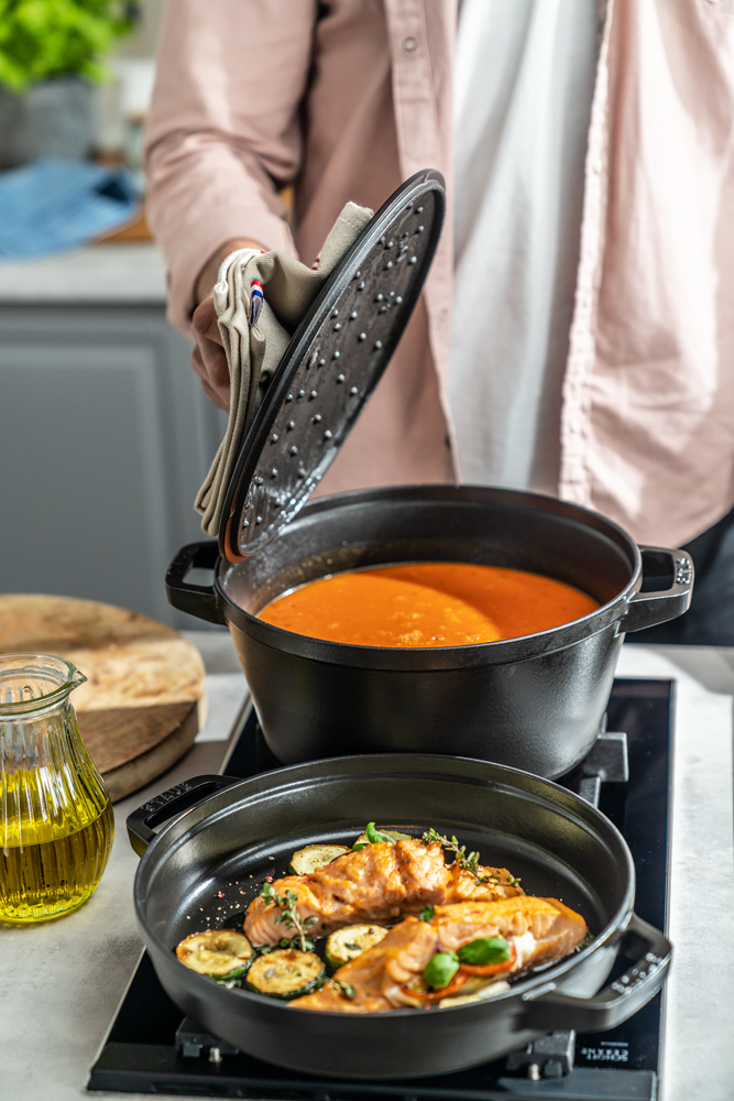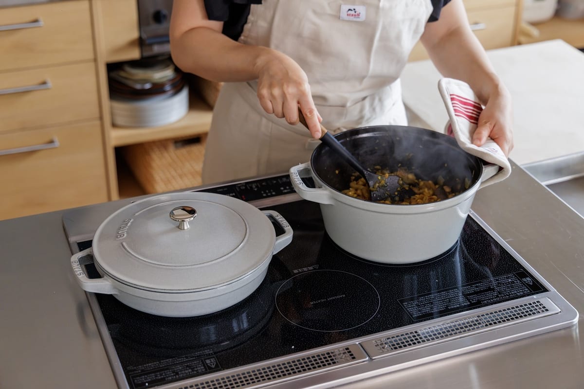 フライパンでは香ばしく焼き上げるロースト調理をというように、ストウブの人気調理をどちらも堪能することができます。